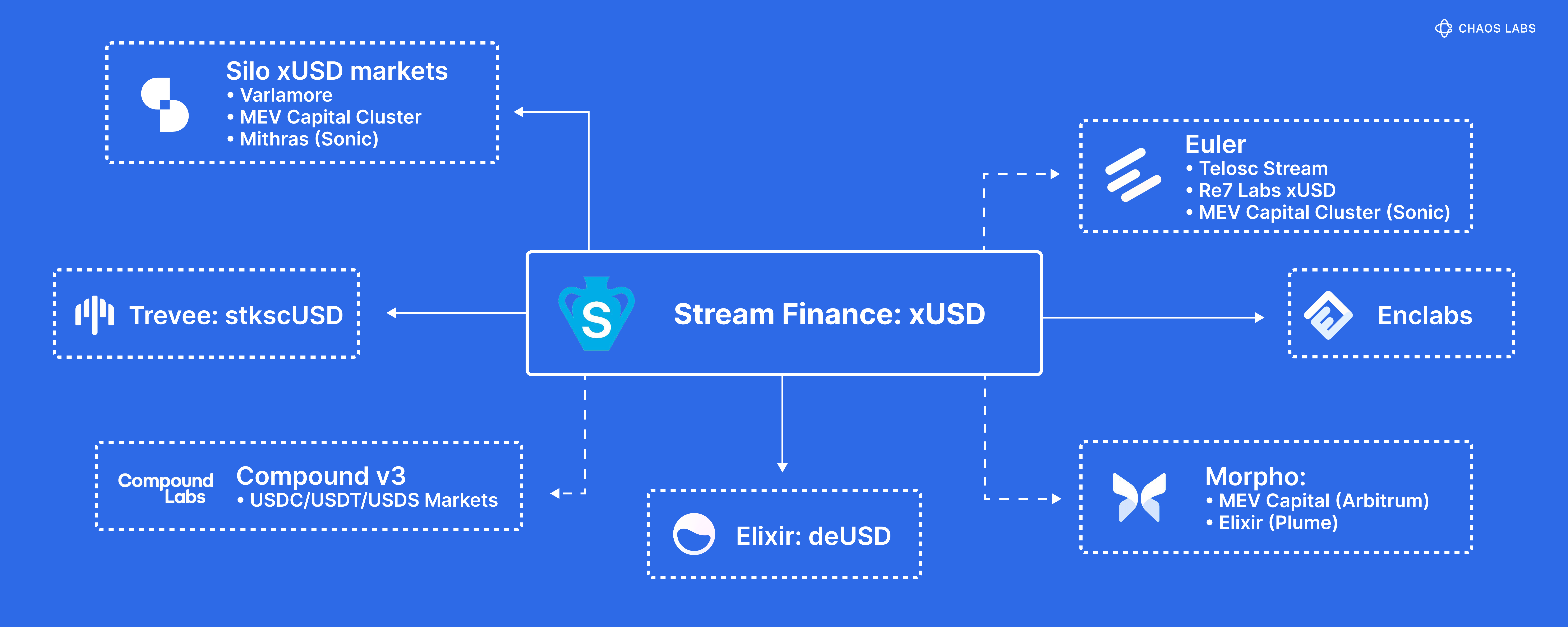 - A few other synthetic assets have encountered direct or indirect exposure to xUSD or s/deUSD, including Trevee's scUSD, with approx $13M through Silo Finance & Euler Finance.