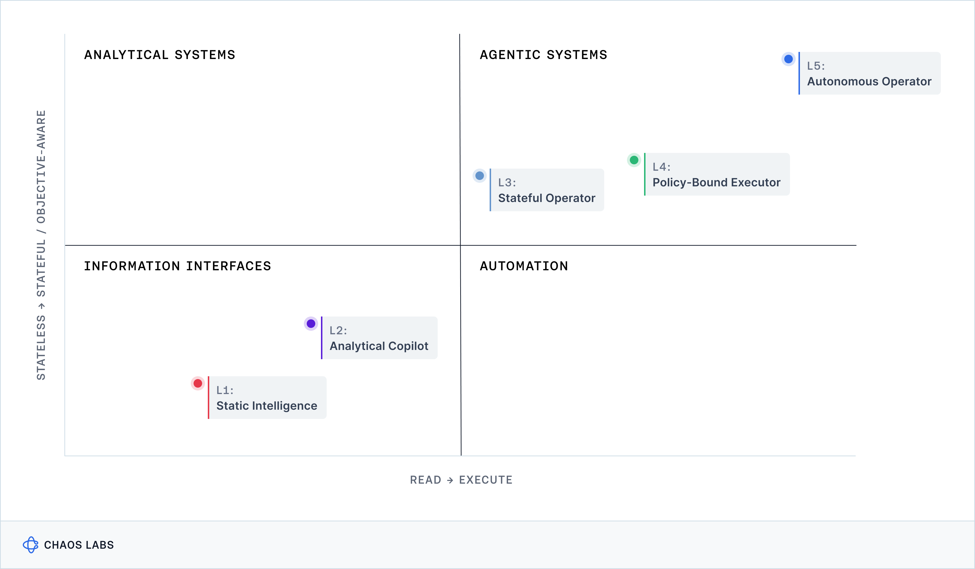 You can have the best model and fail at level 5 because your data pipeline has an hour-long lag or your permission model was not designed for autonomous execution.