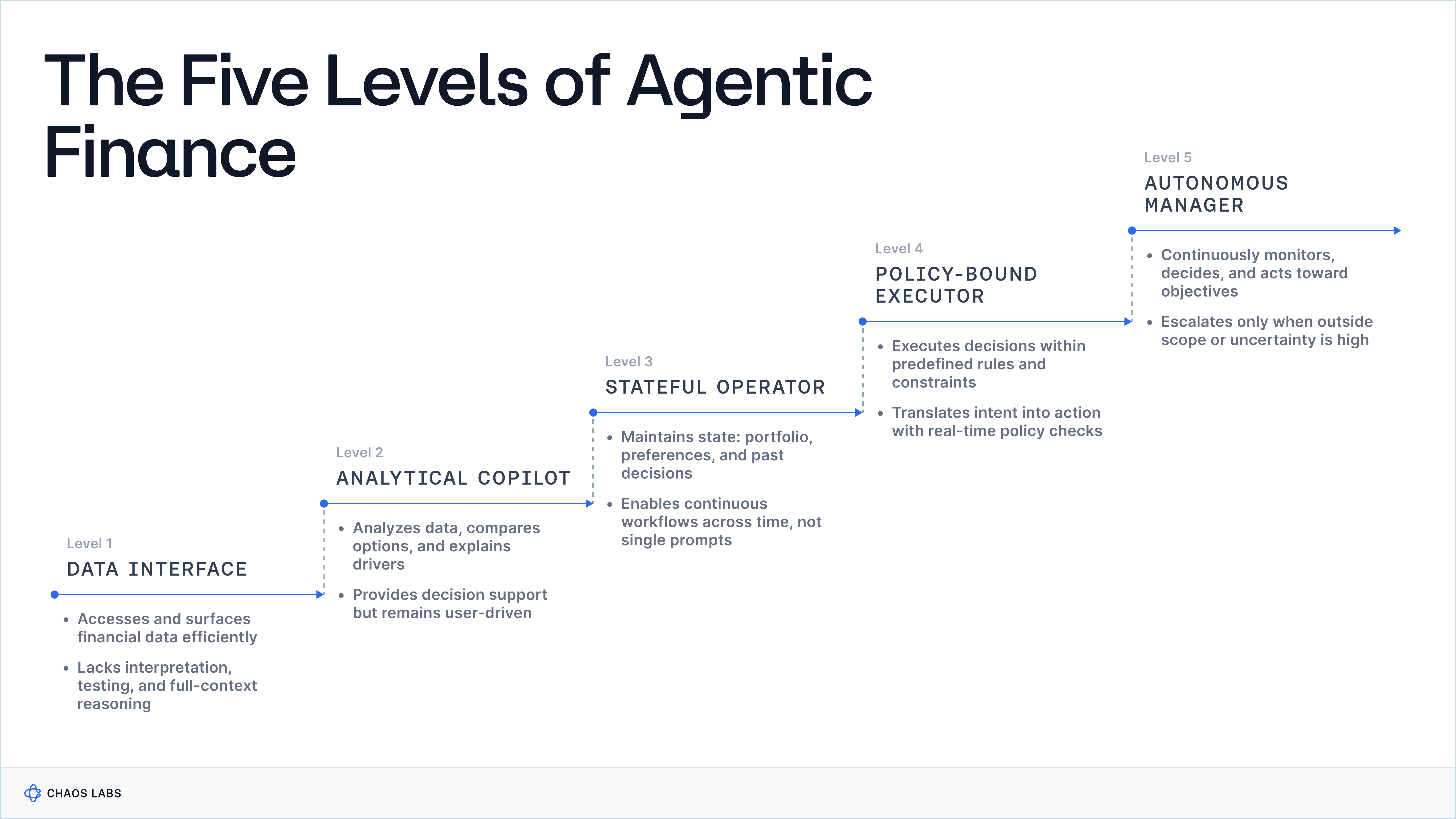 Today, most financial agents sit in the earlier stages. We believe the opportunity lies further up the curve, where financial AI becomes an operating layer that genuinely empowers the end user. At this level, the bar is higher and only teams with a real edge will build financial AI that actually matters.