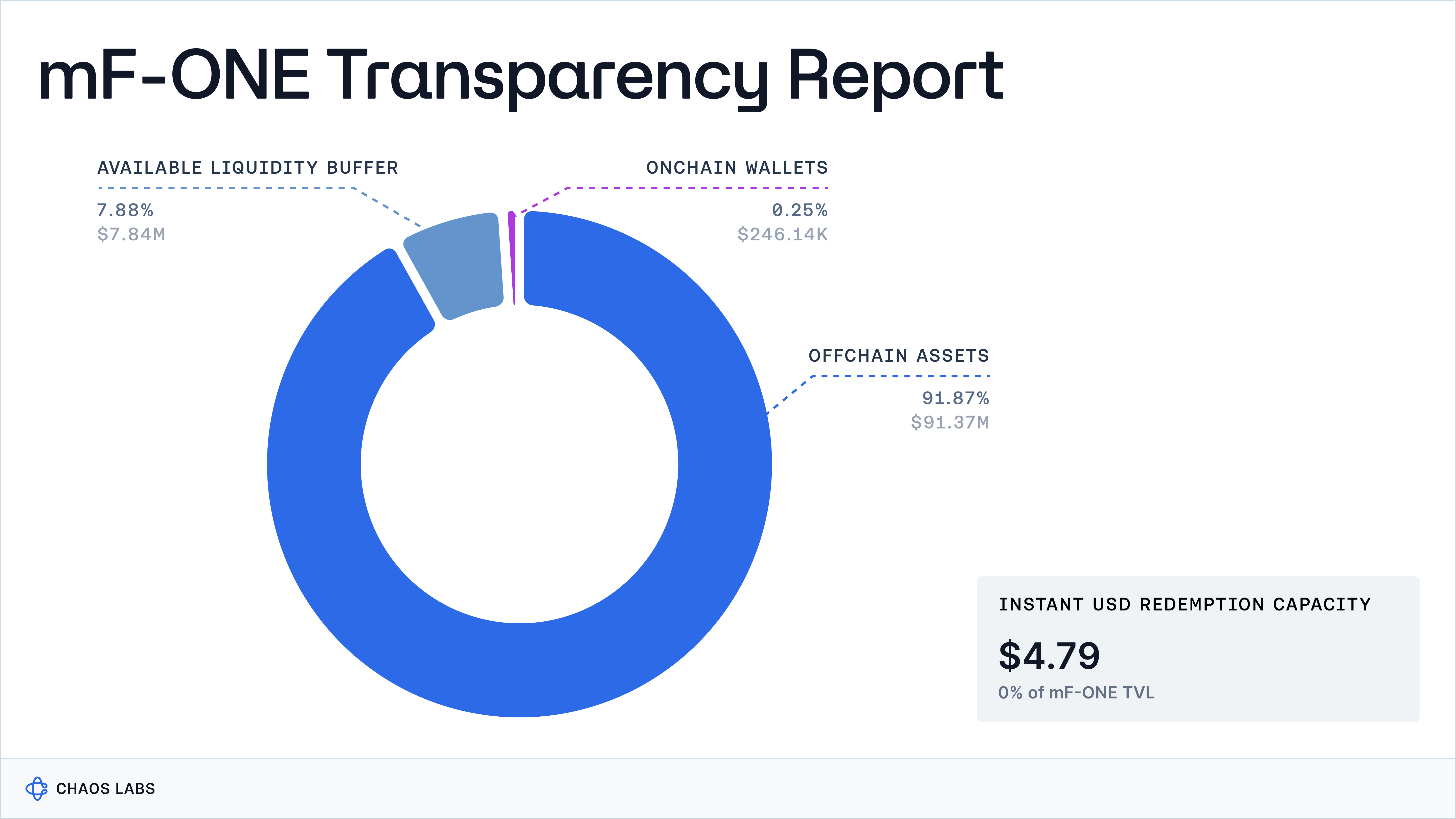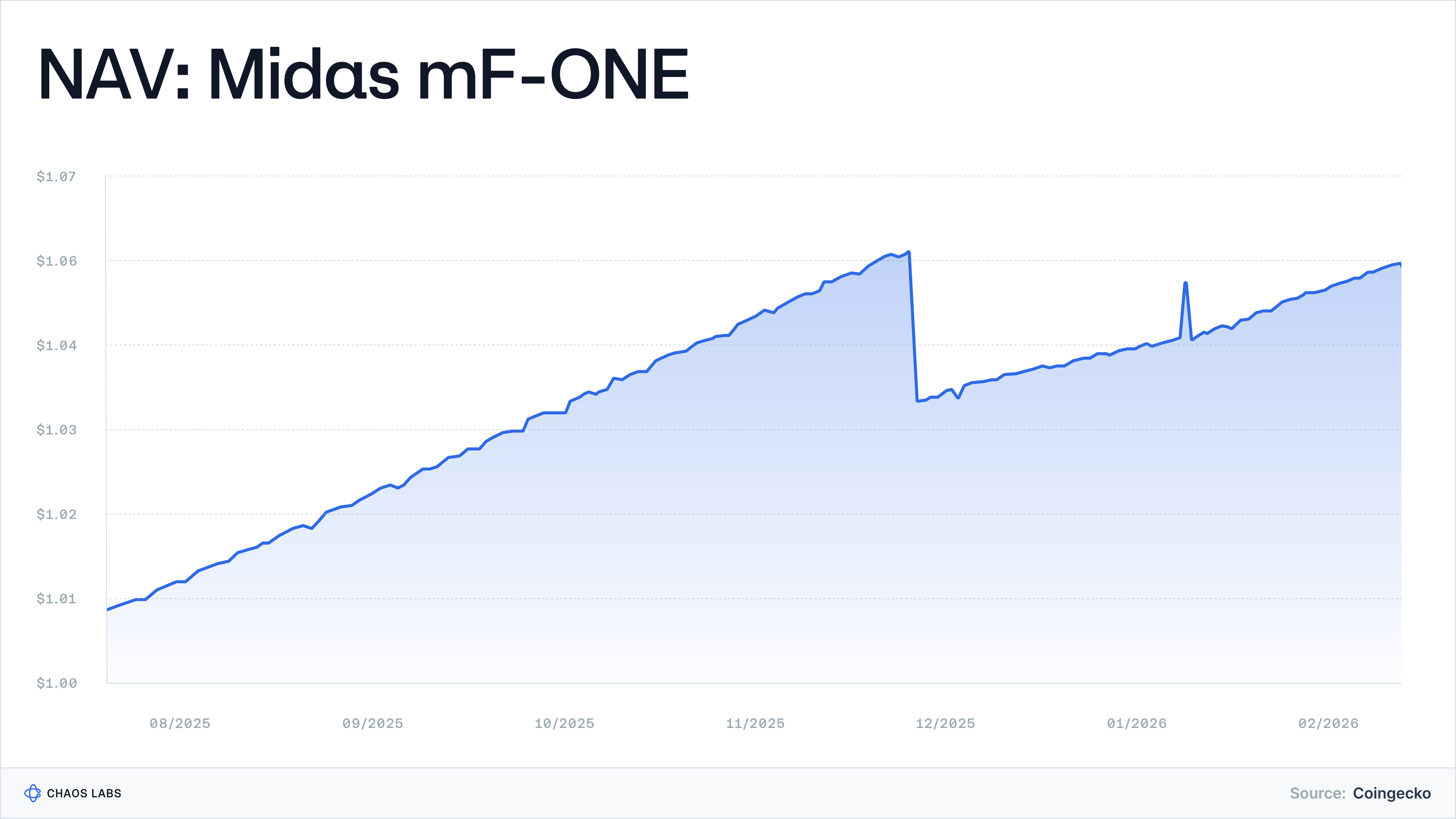 In December 2025, mF-ONE’s NAV declined by about 2% after Fasanara’s fund administrator applied more conservative assumptions to a large default linked to the First Brands bankruptcy. The updated NAV was transmitted onchain via the mF-ONE oracle.