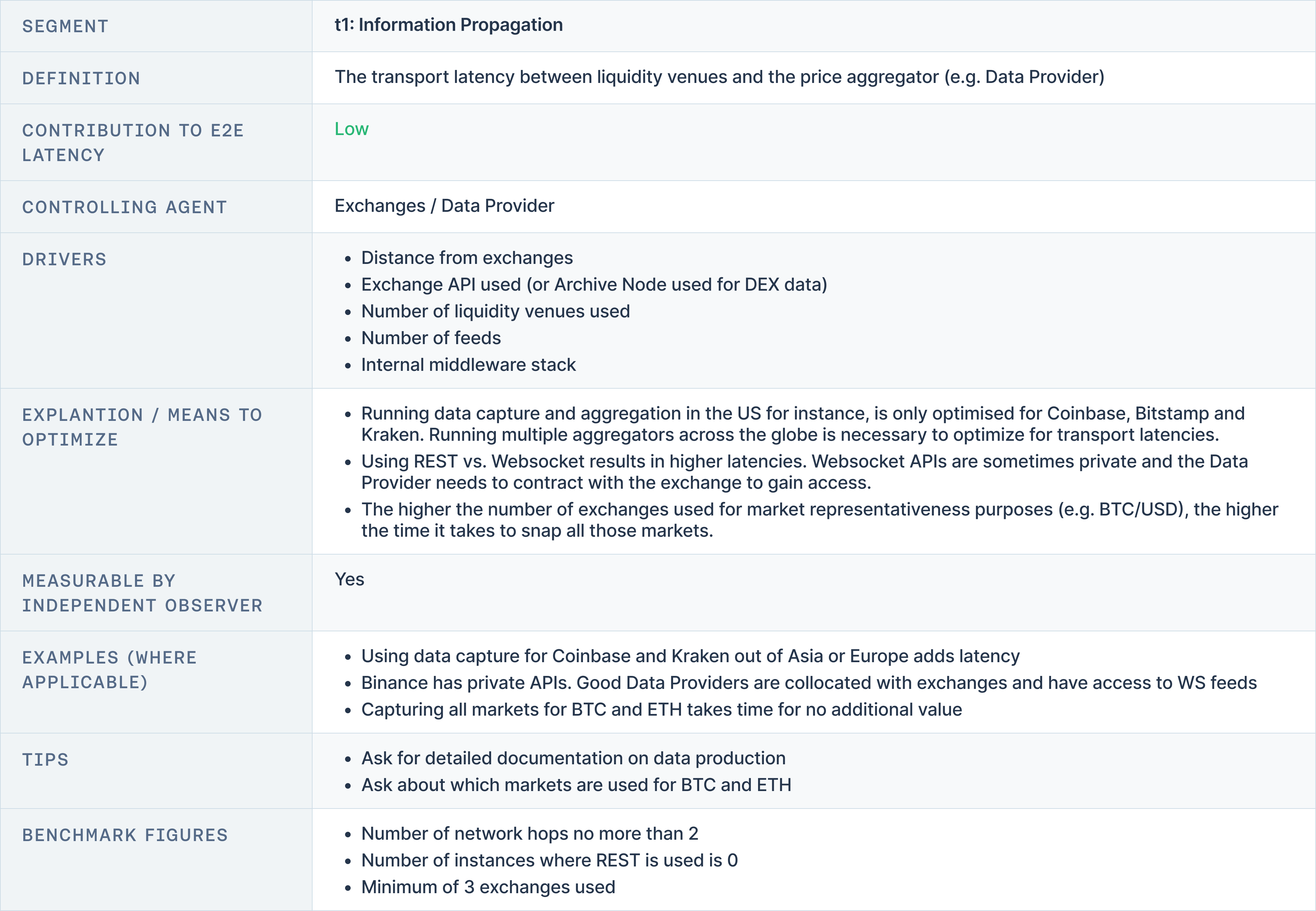 - Rationale: The time taken to transmit data between liquidity venues and exchanges to oracles (t1) can introduce delays that affect the data's freshness. Minimising this transport latency is critical for timely decision-making.