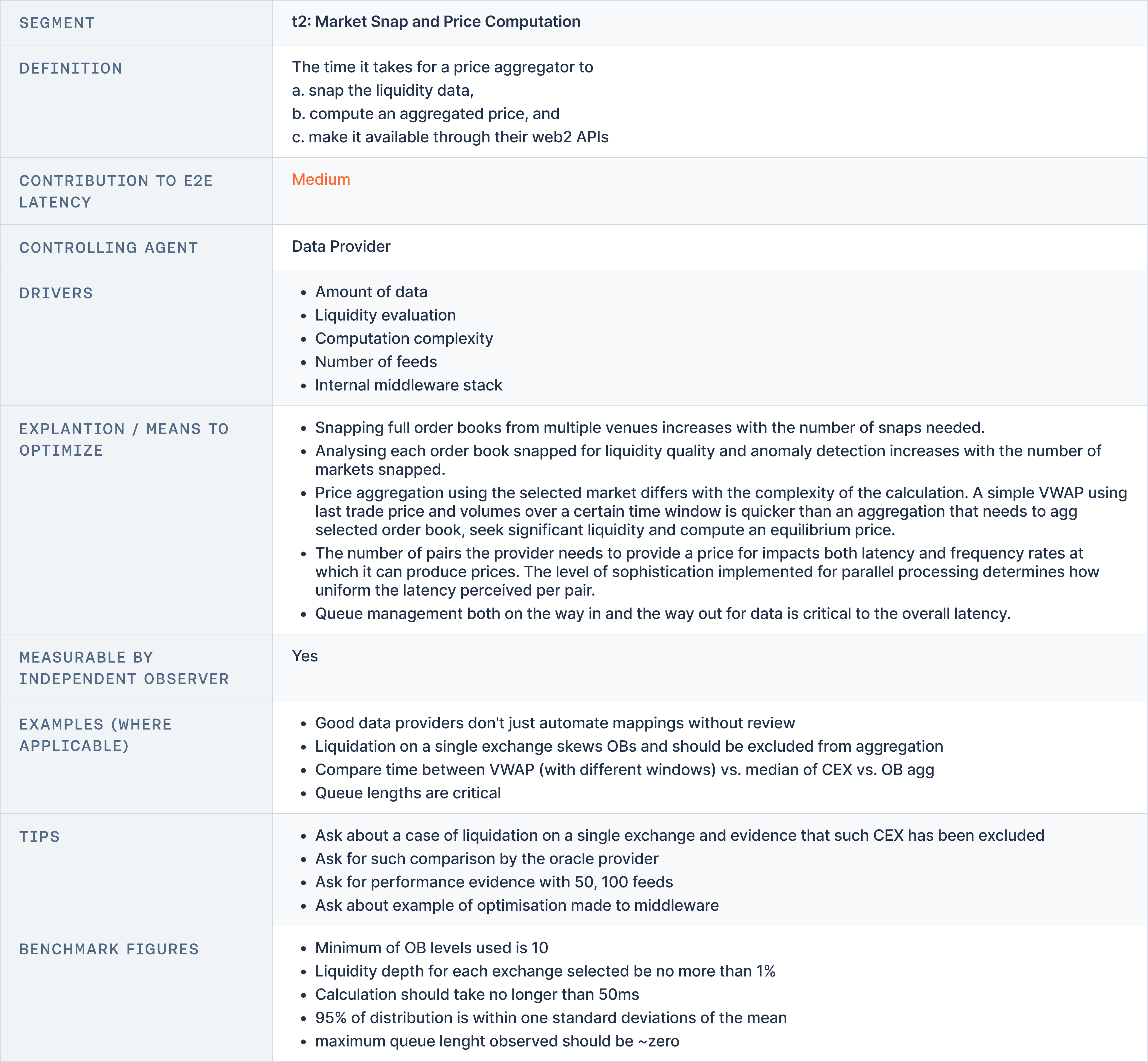 - t2: Market Snap and Price Computation Latency, which encompasses the oracle's processing and aggregation of data.