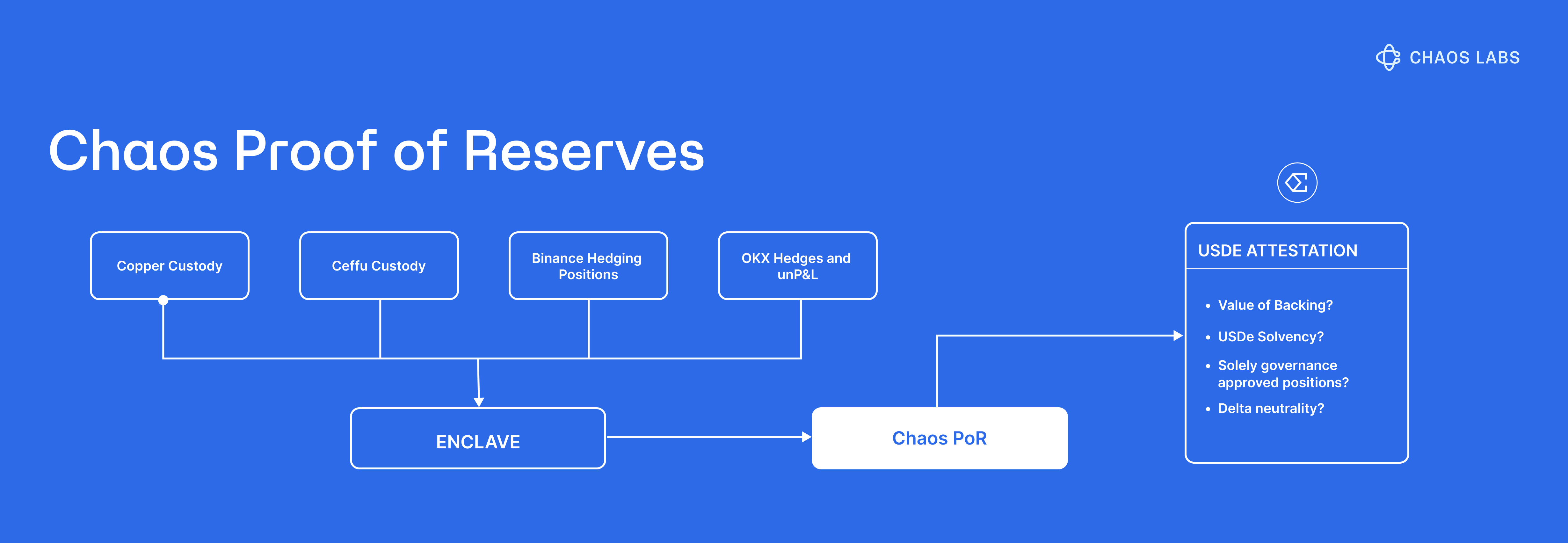 When Bybit suffered a $1.4B exploit earlier in February 2025, uncertainty around Ethena's USDe exposure triggered over $20M in liquidations across DeFi lending markets. Following this incident, Ethena integrated Chaos Proof of Reserve to close the visibility gap and provide users with the data needed to separate verified exposure from market speculation.