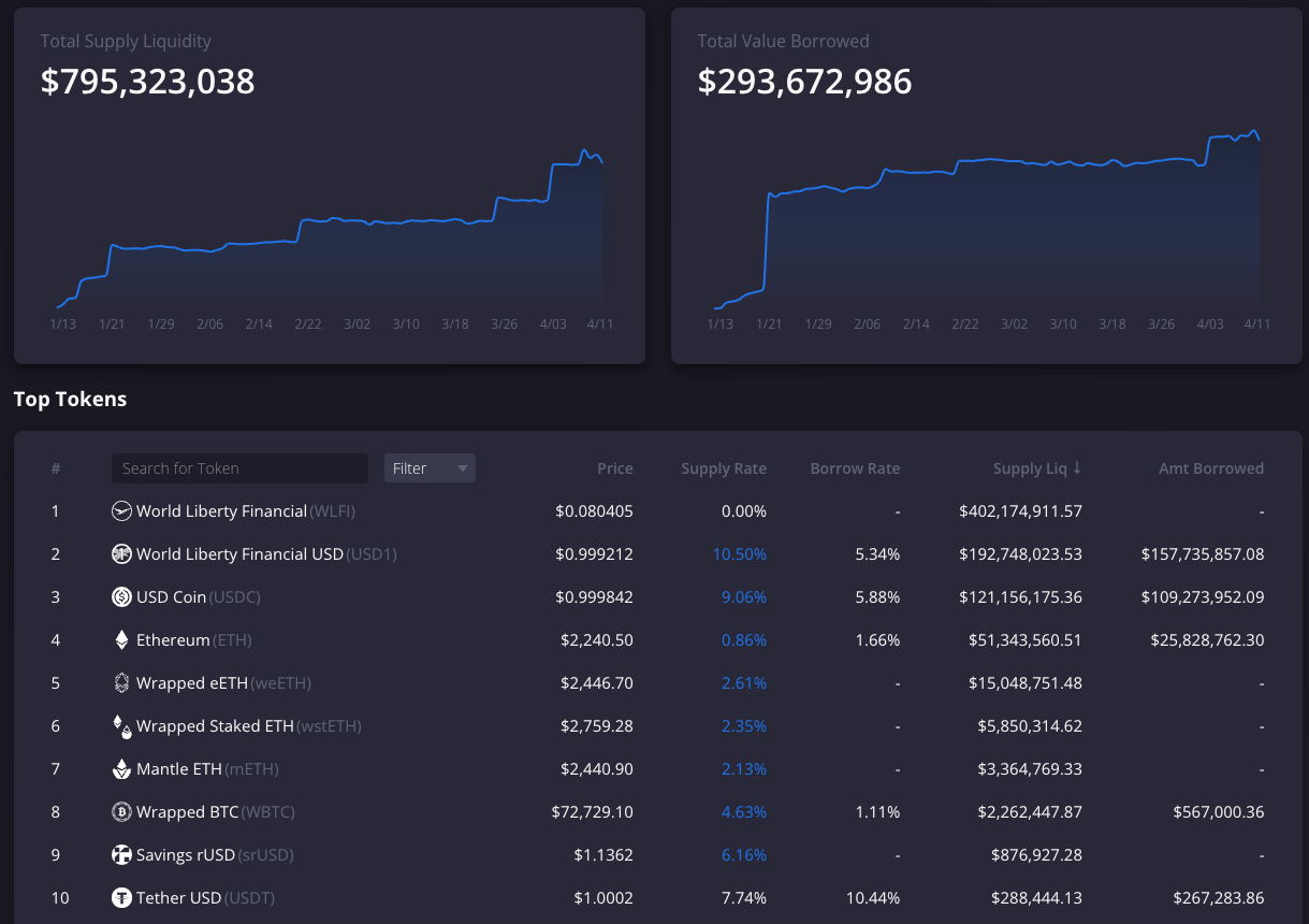 One interpretation is that this activity increased utilization and rates on Dolomite for USD1 and USDC, incentivizing usage. USD1 utilization rose to 83.4%, with supply rates at 10.64% when including WLFI rewards via Merkl (the Merkl campaign ends in three days). USDC utilization reached 90.19%, with supply rates at 9.07%. Borrow rates for both assets moved into the 5% range, pushing most non-WLFI-related looped strategies into negative returns.